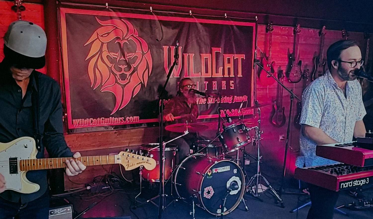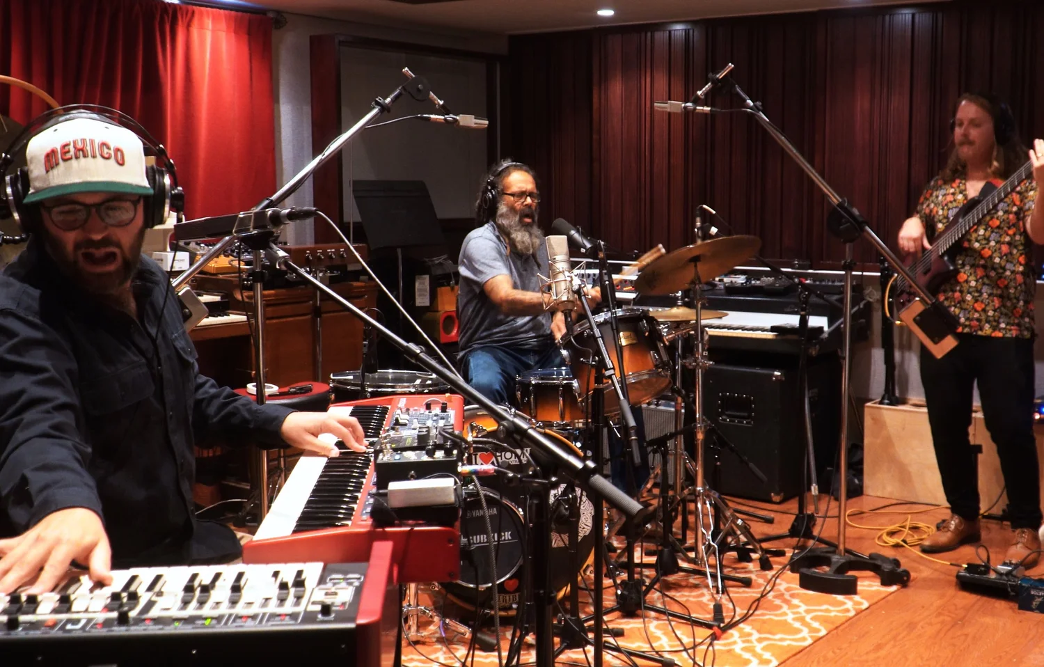 Anchoring the band’s live presentation is the musicianship behind the vocals. Pacheco leads from the drum kit while singing, while James simultaneously handles keys and vocals, creating a performance built on feel, interplay, and real-time exploration of song arrangements with space for improvisation. Rounding out the combo is bassist Shrub Bravo and longtime lead guitarist Pelle.